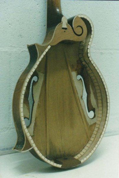 In 1918 on the first floor of 225 Parson rd, The Gibson Co. witnessed the introduction of an iconic new mandolin that featured among other things a longer neck with 12 frets clear of the body, violin style f-holes, a distinctive shaded ‘Cremona’ finish and most importantly “Plate-Tuning” (aka “Tap-Tuning”) which would change the protocol of how Gibson instruments would be made for years to come. Under the scientific guidance of Lloyd Allayre Loar, soundboards and backboards for Gibson’s Master Model mandolins, mandolas, and guitars were carefully graduated from their thickest to their thinnest regions. For mandolins, this called for soundboards and backboards to be carved to about .110″ in the thinnest or- “minimum area” (about 1″ in from the perimeter) and about .180″ at the center. Since these components were later “tuned,” the final thickness would differ from instrument to instrument depending on the stiffness of the wood, grain distribution, density, etc. Soundboards were also arched to give them strength. The graduation from the center outwards provided for a means of efficient distribution and transfer of energy (from the bridge outwards). This carving technique, often called “Stradivarius arching,” allowed the soundboard and backboard to “pump” like the paper cone of a common speaker, generating greater compression and rarefaction within the instrument’s air chamber; a movement that provided theses instruments with greater amplitude then their former counterparts. Longitudinal tone bars were also “tuned” by thinning them to adjust the stiffness of the soundboard. The bass bar and treble bar were positioned in a non-symmetrical manner, and sized differently so that the treble side and bass side of the soundboard could be separately adjusted (i.e. the two tone bars were not symmetrically positioned). By removing wood from the tone bar, the soundboard would become less stiff, resulting in a lowered pitch. By tuning the tone bars to a specific note, Gibson engineers could be assured of likewise adjusting the soundboard to a known and very repeatable stiffness. The tuning process is so controllable that a whole-tone difference could be attained between the two tone bars. As a final tuning step, the f-hole openings were also “tuned”. To do this, the size of the f-holes was adjusted after the instrument was assembled, to achieve the final tuning of the instrument. As the f-holes were made wider (larger), the pitch of the air chamber would be raised until the proper note was achievable. Loar followed the teachings of Hermann L. F. Helmholz (1821-1894) who studied the resonant frequencies of variously sized air chambers. Loar carefully sized the air chambers and f-holes of the instruments he designed to provide a correctly tuned space for each type and size of instrument. Since an adjustment to one part of the instrument effects the tuning of another part, one can appreciate the hours of trial and error that preceded the development and subsequent finalization of the dimensions of Gibson’s “Master Model” instruments. As final proof of the hand-tuning process, Loar gave his signature on a label inside the instrument attesting that “The top, back, tone-bars, and air-chamber of this instrument were tested, tuned and the assemble(d) instrument tried and approved ___(date)___.” (Siminoff, Instrument Design)